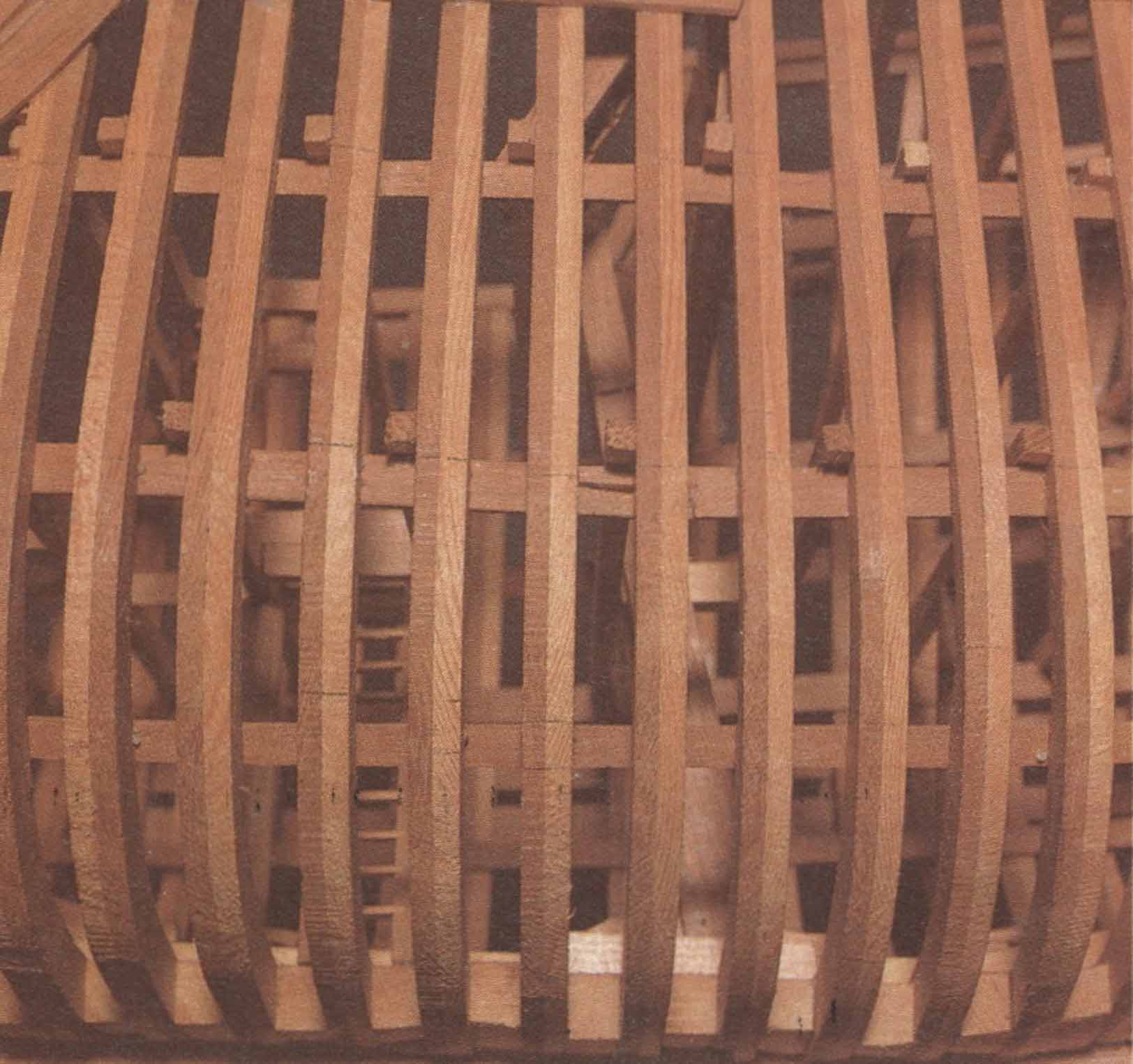 Fijadas las cuadernas fijaremos tanto el exterior como el interior de la estructura, igualándola definitivamente. Esta operación debe ser lo más cuidadosa posible, para que tanto los cintones como las tracas de los forros interno, cuando lo haya, y externo asienten perfectamente.