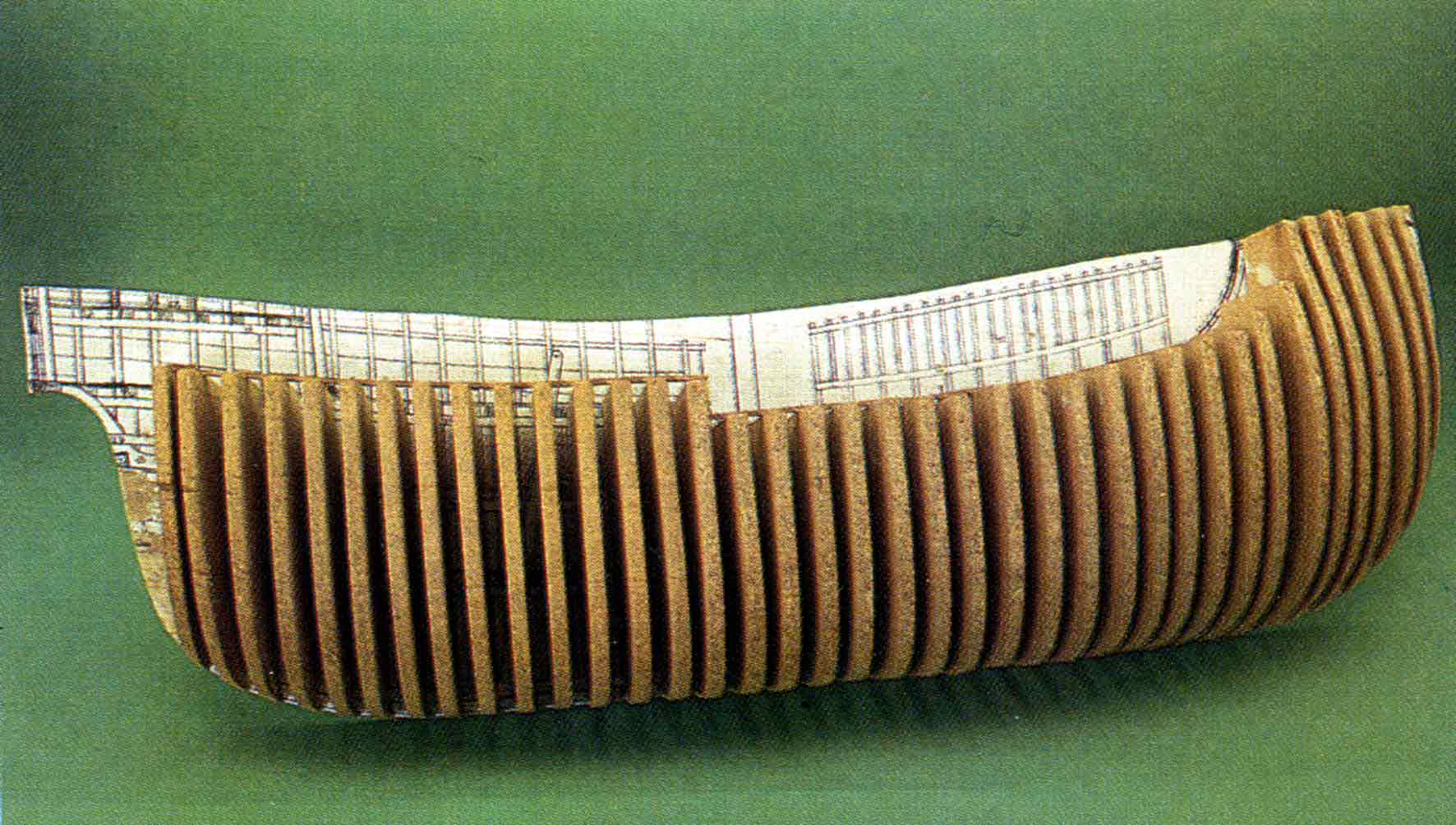 El primer paso consiste en estudiar concienzudamente el plano de formas y determinar tanto las que no aparecen en él como las que decidamos incluir. Recortaremos en contrachapado o cartón duro la quilla y los mamparos que sí aparecen dibujados, pero cortados por su eje central de simetría, de modo que al desarrollarlo tengamos medio barco. Fijaremos todo el conjunto sobre el plano de crujía, que puede ser madera aglomerada o contrachapado grueso, de manera que podamos trabajar sobre el conjunto, al tiempo que, cuando sea necesario, se pueda separar cada uno de los mamparos. Para ello es aconsejable no pegarlos, sino utilizar tornillos. Del mismo modo colocaremos tableros un poco más grandes que el tamaño de las cuadernas en los lugares previamente señalados para las nuevas cuadernas, sujetándolas también mediante tornillos.