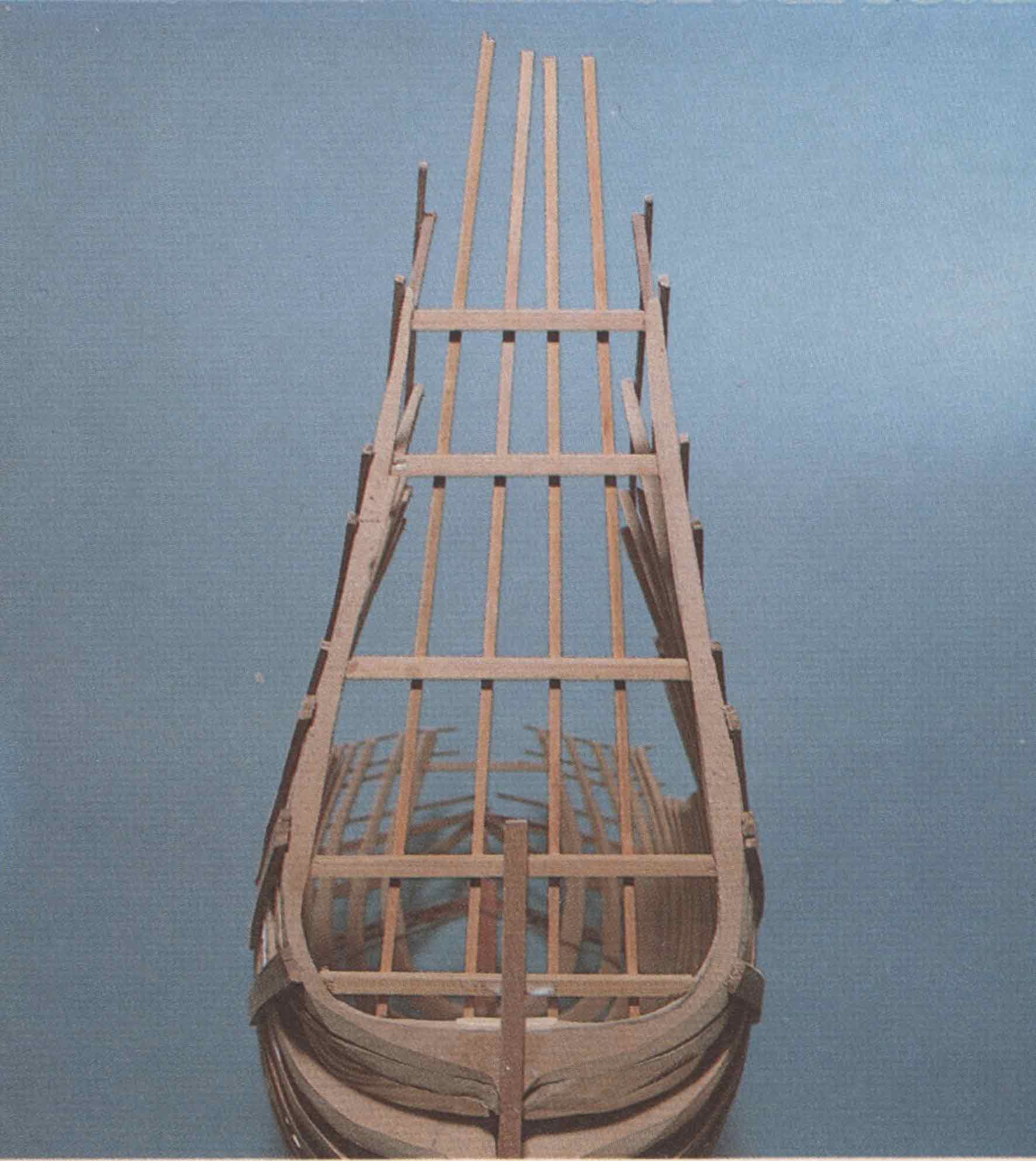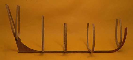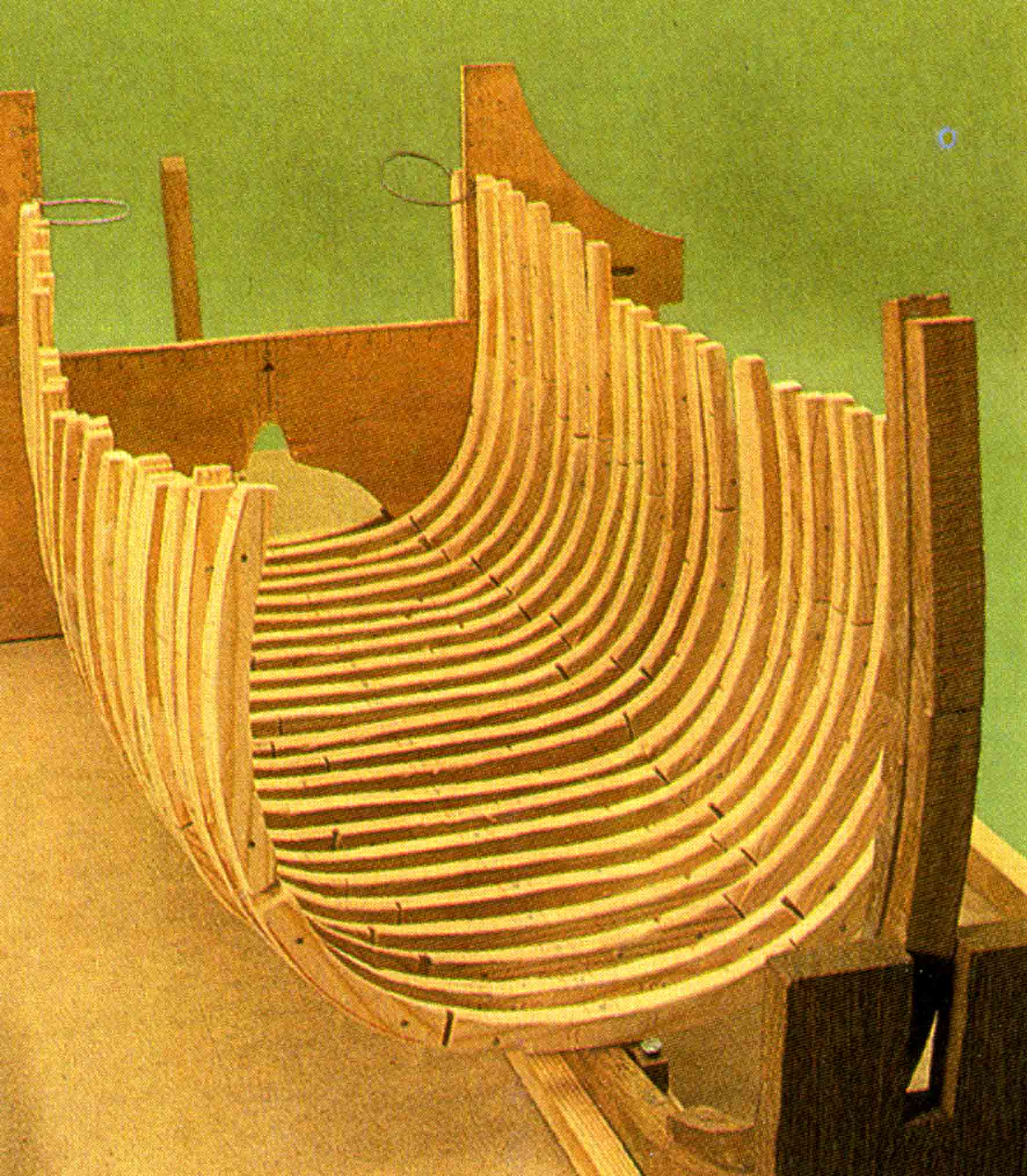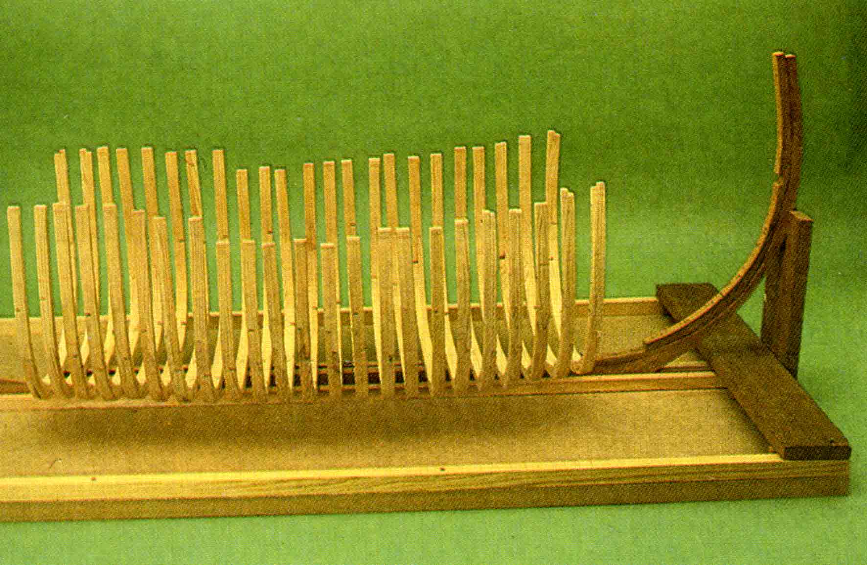 Llegados a este punto nos encontramos con la operación más delicada de todo el trabajo, pues de ella depende la conformación final de toda la estructura de la nave. Se trata del adecuado montaje de la quilla y las cuadernas.