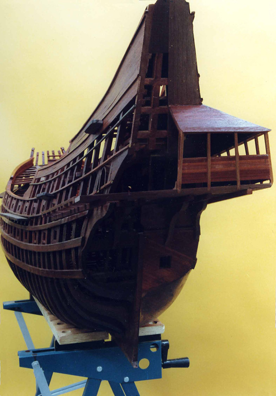 A popa se construirá la estructura del espejo, formada por yugos y cuadernas de popa.