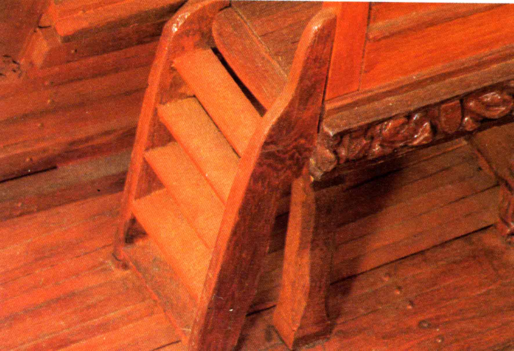 Construiremos los marcos de las escotillas o brazolas, que sobresalen de la cubierta para impedir la entrada del agua, y que, al mismo tiempo, sirven de asiento a los cuarteles y enjaretados que las cierran. En las bodegas y escotillas internas, donde no es posible colocar escaleras, se colocan puntales con escalones tallados para permitir el acceso.