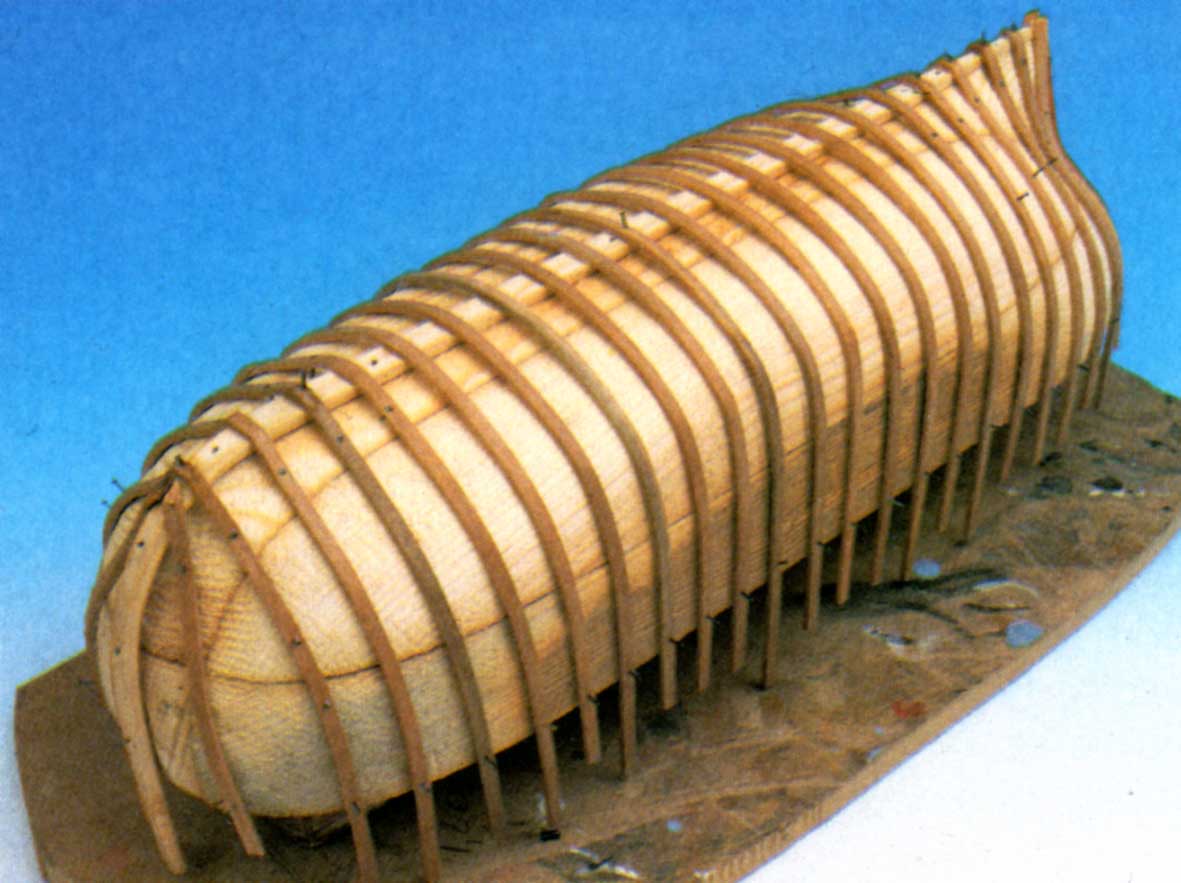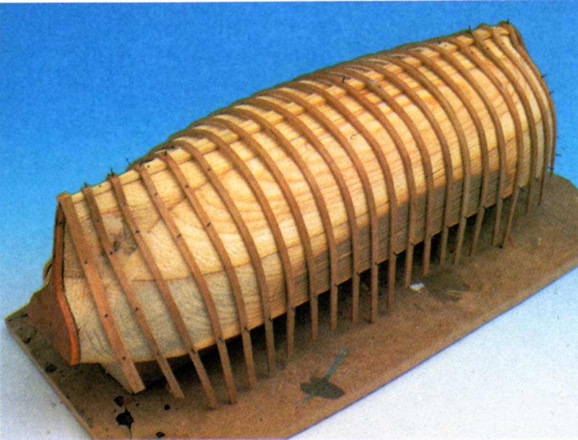 con conformar una estructura de falsa quilla y cuadernas con las formas básicas, y rellenarla con masilla de modo que se forme un molde resistente sobre el que se pueda trabajar.
