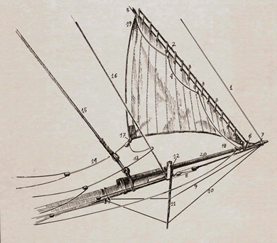 18 –Amura o puño de amura. 19.—Pena o puño de chiza. 20.—Botalón.