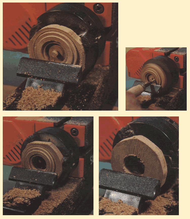 El cañón torneado en madera. Tanto el tubo como la cureña que aparecen en las fotos están a escala 1/35.