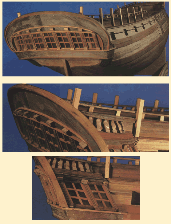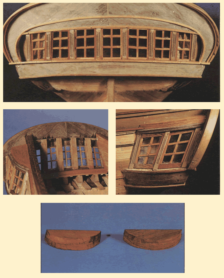 Estas son las piezas que se colocarán en la última cuaderna de popa y que soportarán los ventanales, galerías, espejo y coronamiento.