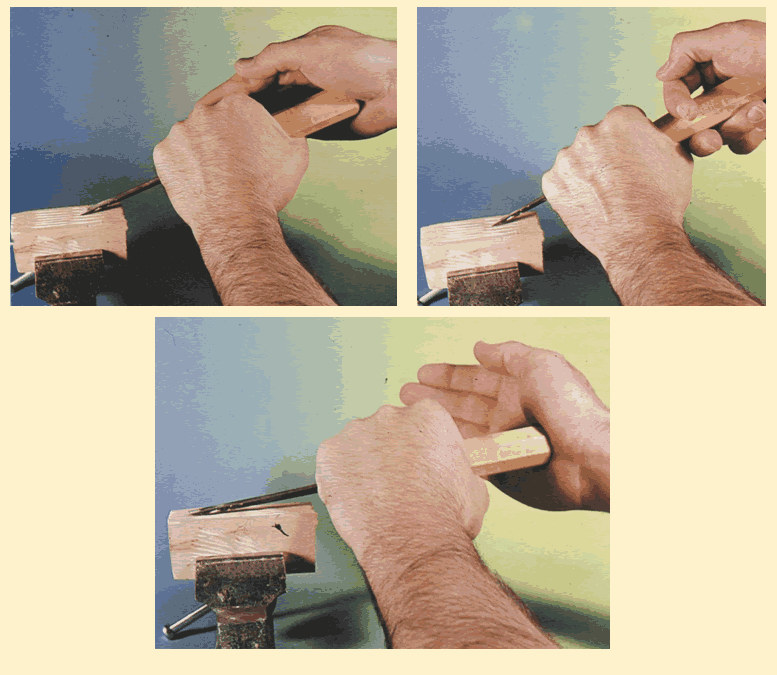 Con una gubia de sección curva y fina comenzar a tallar cuidadosamente siguiendo las líneas trazadas.