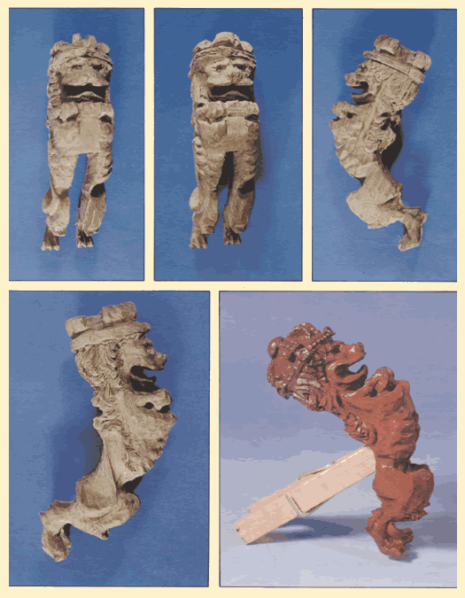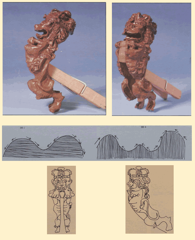 Mediante cuchilla y gubia, y comprobando constantemente sobre el calco, así como con el dibujo, lograremos dar a las ménsulas su aspecto definitivo.