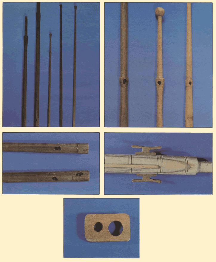 Estas son las distintas piezas del cañón en madera y metal. Se repetirán tantas veces cuantos cañones sean precisos, En este caso se han utilizado como originales para la confección de moldes y así obtener las piezas en plomo.